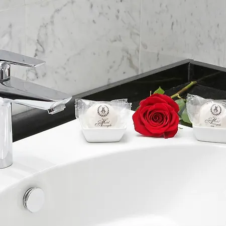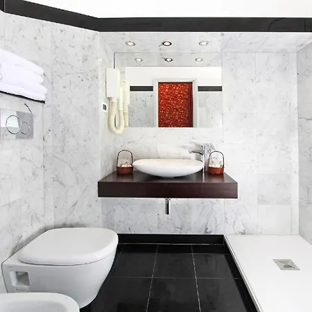 All of the sound-proofed rooms are complete with a flat-screen TV with satellite channels as well as a mini-fridge-bar, and some of them include a balcony and a terrace. Along with sound-proofed windows, they also have a writing table. A separate toilet, along with such amenities as hair dryers and bath sheets, are also at guests' disposal.