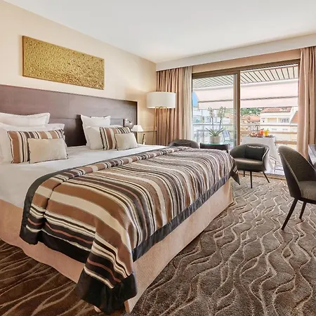 The rooms at this Cannes hotel include an extra bed, an iron and ironing board. Some of them comprise a balcony and a terrace, furnished with a couch set and a writing table. Most rooms have spacious decor including soundproof windows.