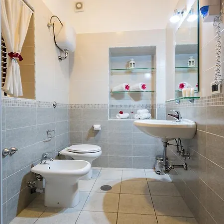 The Pompei hotel features 54 air-conditioned rooms, some of which comprise a balcony and a dressing room. Guests can use a bidet and a spa bathtub, along with a hair dryer.