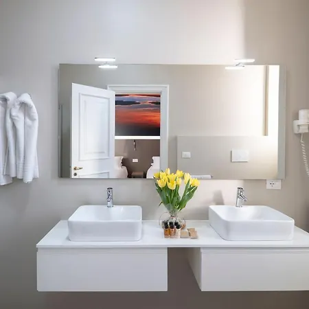 The rooms at the Delle Palme Lecce include an iron and ironing board, and climate control, as well as media facilities like a flat-screen TV with satellite channels. Also, there is a personal safe, a mini-fridge-bar, tea and coffee making equipment provided. Offering such amenities as hair dryers and bath sheets, the bathrooms also include a bidet, a separate toilet, and a shower.