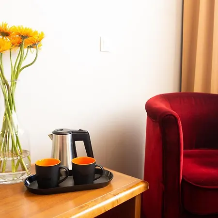 The rooms at this Torun accommodation have a flat-screen TV with satellite channels, along with tea and coffee-making facilities for your convenience. These elegant rooms are furnished with wooden furniture featuring a couch set. The private bathrooms have a bidet, as well as comforts such as dressing gowns and a shower cap. These rooms offer views of the city.