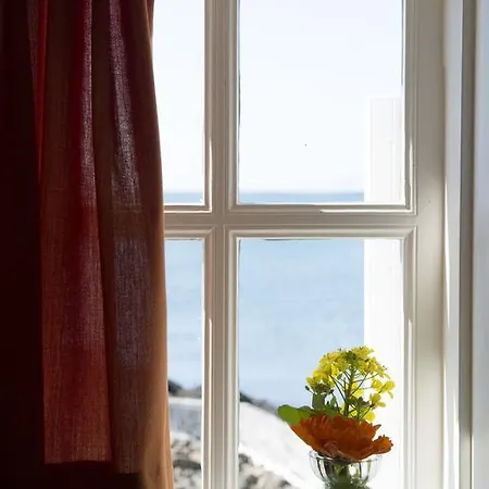 These rooms feature wood floors. Hotel Flatey offers rooms with views of the the bay.
