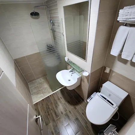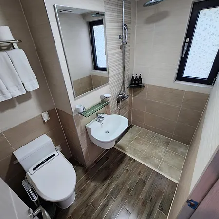 The accommodation welcomes guests to 88 rooms fitted with an air conditioner as well as a flat-screen TV with satellite channels. A bidet, a separate toilet, and a shower, along with a hairdryer and towels, are featured. Rooms of this Jeju hotel overlook the urban.
