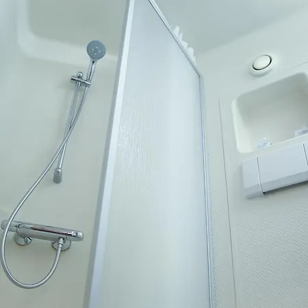 The bathroom features a separate toilet and a shower, along with bath sheets and towels.