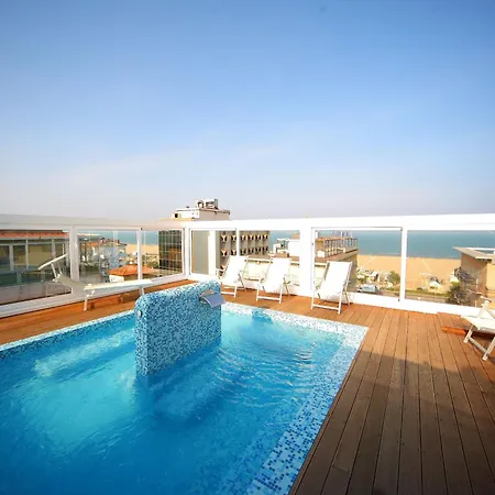With its central location approximately a 25-minute walk from Fiabilandia in the Rimini Central Marina district, the 4-star Hotel Panama Majestic Rimini features 2 hot tubs. Located within 2 miles of Acquario di Rimini Aquarium, the modern hotel offers views of the sea and two pools.