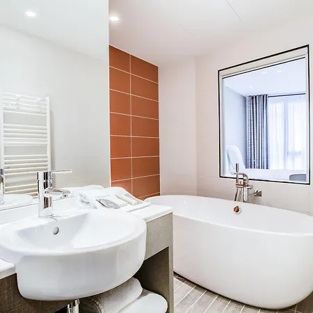 This Lyon hotel welcomes guests to 100 well-appointed rooms. Some of them come with a flat-screen TV along with an electric kettle and coffee/tea making equipment. Furnished with a writing table, they also have soundproof windows. Offering hair dryers and bath sheets, the bathrooms also feature a separate toilet and a shower.