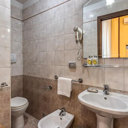 The rooms at the Pomezia Rome feature a writing desk, along with soundproof windows for guests' convenience. A flat-screen TV with satellite channels, as well as comforts as climate control are also featured. Offering a bidet, a separate toilet, and a shower, the bathrooms are also appointed with a hair dryer and towels.
