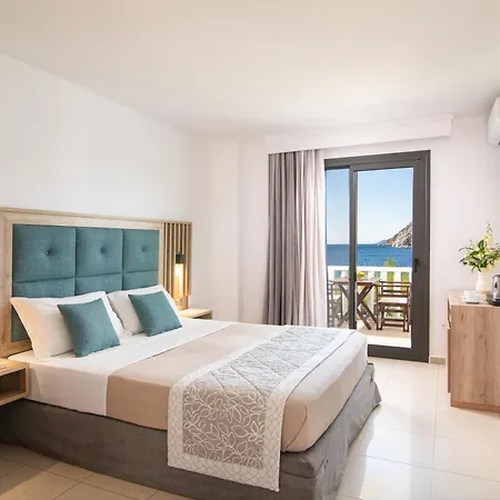 Some of the oundproof rooms have a seating area and a kitchen area, and such facilities as a flat-screen TV, along with a mini bar fridge. The rooms are designed in a spacious manner. The Porto Koufo hotel offers views of the sea from these rooms.