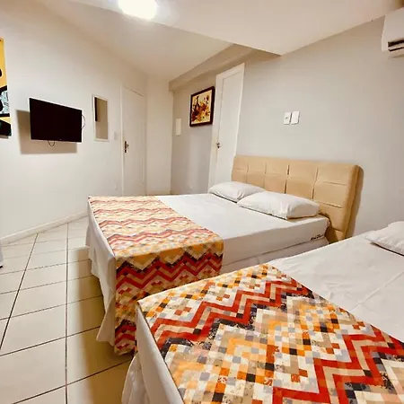 This Salvador accommodation breakfast features fresh fruits, fresh bread, and cold meat. Restaurante Egeu is 0.2 miles from the hotel.