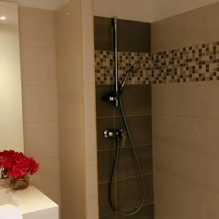 The rooms comprise a dressing room complete with an air conditioner, as well as a flat-screen TV with satellite channels. Along with a mini fridge bar, the rooms are furnished with a writing desk. Offering a walk-in shower and a separate toilet, the bathrooms are also appointed with a hairdryer and bath sheets. Enjoy views of the courtyard, while staying at the Frejus hotel.