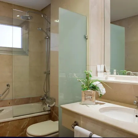 The Villamadrid offers rooms with a sitting area featuring ironing facilities and an air conditioner, along with Wi-Fi and a flat-screen TV with satellite channels. Bathrooms include a separate toilet and a shower, along with hair dryers and towels.
