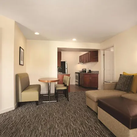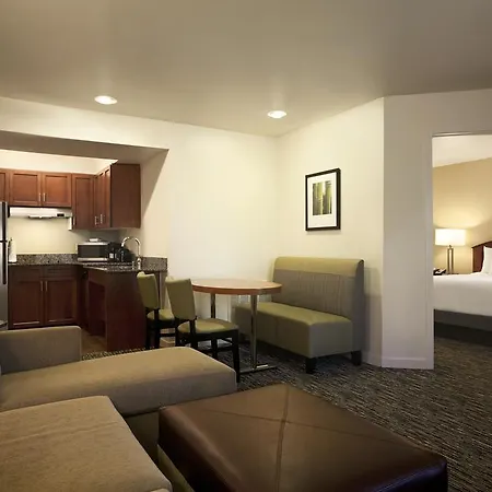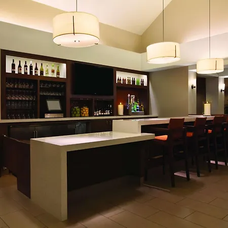 The Hyatt House Pleasanton offers an American restaurant serving American dishes. The hotel invites guests to have a drink at a snack bar. The Pleasanton hotel is within short walking distance of Big Apple Bagels and offers a broad selection of meals.