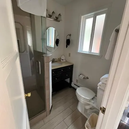 Bathroom facilities at June Lake Villager villa also include a tub, a walk-in shower, and a separate toilet. Also, a hair dryer, bath sheets, and towels are provided for your comfort.
