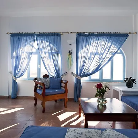 This Fira hotel has 7 rooms, comprising a patio and a balcony. A flat-screen TV with satellite channels, along with a mini bar fridge, tea and coffee making equipment, are offered. Furnished with a couch set, they also have soundproof windows.