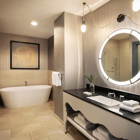 The rooms at the designer Kimpton Hotel Monaco Denver By Ihg have individual climate control, blackout drapes, and central heating system. Some of them comprise a sitting area and a kitchenette area, appointed with a writing table and a couch bed. A bathtub, a walk-in shower, and a separate toilet, along with hair dryers and a shower cap, are provided.