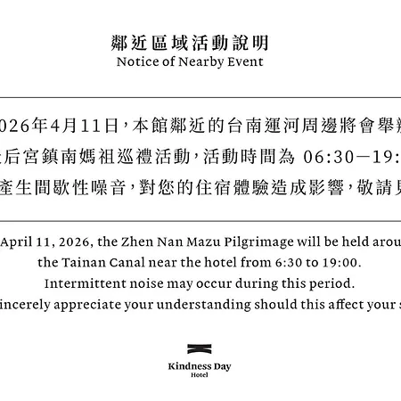 Situated about 25 minutes' walk from Tainan Public Meeting Hall, the comfortable 3-star Kindness Day Hotel Tainan offers a 24/7 business center with a range of business amenities. Offering bicycle usage, this hotel is within short walking distance of Yaowang Temple.