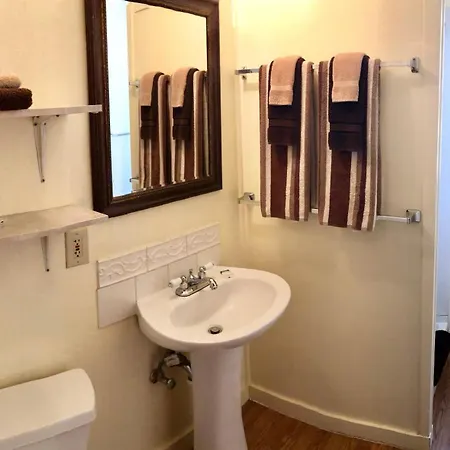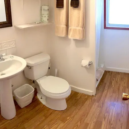 This accommodation includes a bathroom with a tub, a separate toilet, and a shower. Bathrooms also feature towels for added comfort.