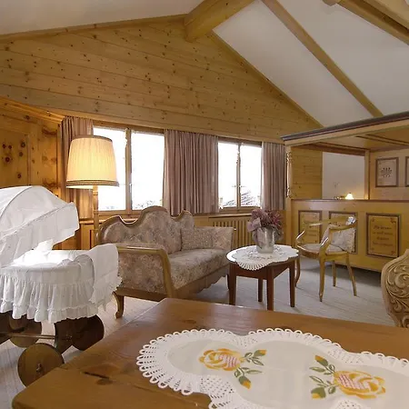 A rustic-style decor is featured in the rooms at the Kandersteg property. The rooms of the Kandersteg hotel feature rustic furniture.
