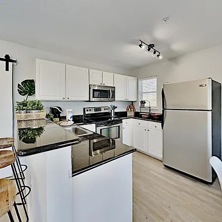 The St. Pete Beach property offers rooms with a balcony and a kitchenette featuring ironing facilities and climate control, along with a multi-channel television. Self-catering facilities include a microwave oven, a fridge, and a kitchenware. The separate bathrooms are appointed with bath sheets and towels. Looking onto the inner courtyard, the apartment features a full kitchen with a microwave, a refrigerator, and kitchenware.
