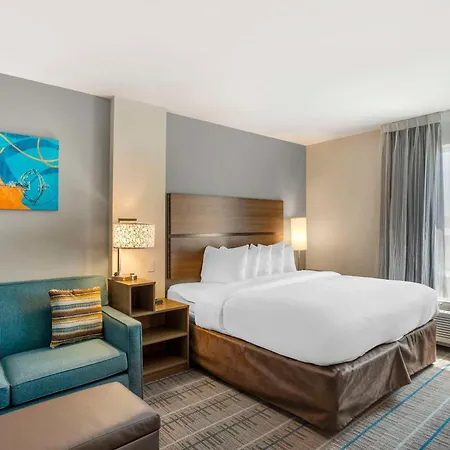 Some rooms at the Mainstay Suites North - Central are appointed with blackout drapes and an iron with ironing board along with self-catering options such as a coffee maker. Rooms also have a microwave, a fridge, and a kitchenware.