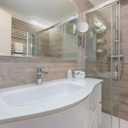 Ideally located 16 minutes' stroll from Aquafollie, the 4-star Marina Palace Hotel 4 Stelle S Caorle features rooms with views of the pool. A seasonal outdoor pool as well as a Turkish bath and a sauna are available for you at this non-smoking hotel, located right near Adriagolf.