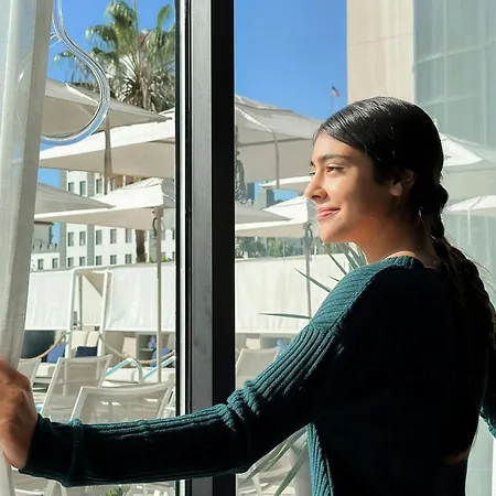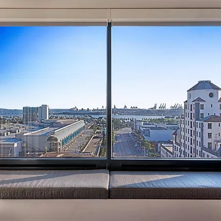 The non-smoking Marriott Long Beach Downtown has a rooftop swimming pool and a gym.