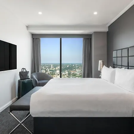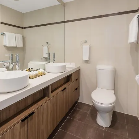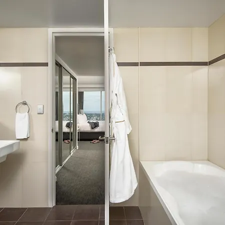 Offering a swimming pool, the 5-star Meriton Suites World Tower, Sydney hotel is nestled in a business neighborhood, 16 minutes' walk from WILD LIFE Sydney Zoo. Boasting the location just a short stroll from Queen Victoria Building, the non-smoking aparthotel offers a view over city and a hot tub and a sauna.