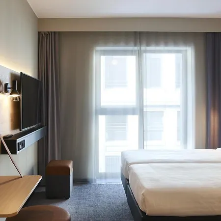 This Ixelles hotel features fifty one restaurant. The onsite bar has a lounge and a terrace and is decorated with glass. It also looks onto the port.