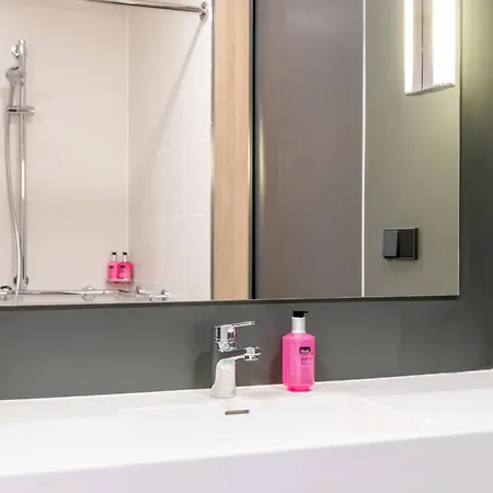 Guests can also use a walk-in shower and a sink, along with such amenities as towels. These stylish rooms also feature views of the urban.