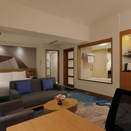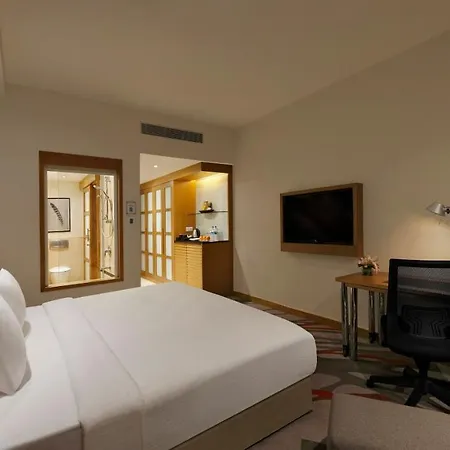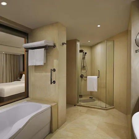 Fitness classes and massage therapy can be provided at a surcharge. The Novotel Hyderabad Convention Centre also includes a swimming pool and a fitness area. Furthermore, this hotel provides access to a full spa and a spa salon, as well as a golf course.
