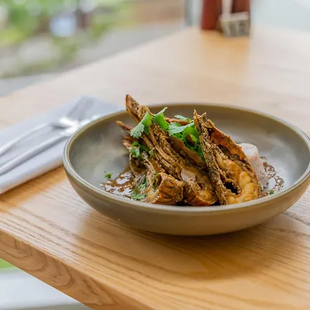 Seafood dishes are prepared at Palisade Kitchen restaurant on site the Novotel Wollongong Northbeach. A lounge bar is available on site. It is located in the lobby.