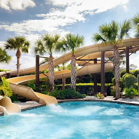 Offing a prime location 1.9 miles from the Catholic church "Mary Queen of the Universe Shrine", the welcoming Orlando World Center Marriott Hotel Lake Buena Vista has 7 water slides. Located just a short stroll from Wet'N Wild Water Park, the 4-star family resort features an à la carte restaurant, a lazy river, spa therapy, and a shared lounge.