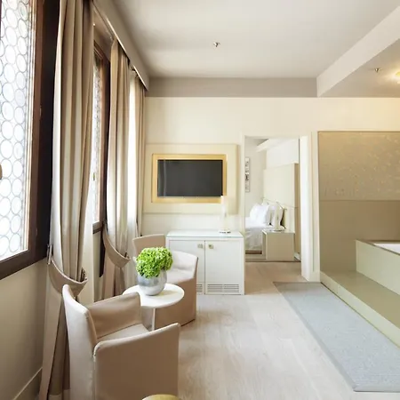 The modern rooms at the Venice property are furnished with a couch set, and feature a mini bar fridge and coffee/tea making facilities. Private bathrooms include nice touches such as bathrobes. Many of these modern rooms look onto the canal.