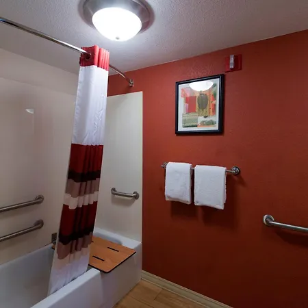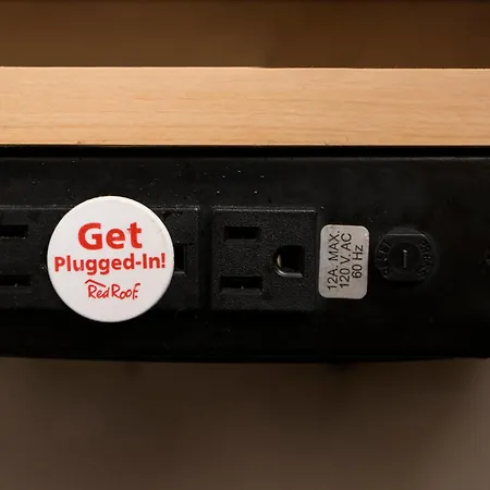 The rooms at the Red Roof Inn Dayton North Airport include individual climate control, central heating system, and an iron with ironing board. Some of them comprise a sitting area and a kitchenette area, furnished with a writing desk and a couch bed. The rooms have an electric kettle and a coffeemaker for self-catering along with free wireless internet and a flat-screen TV for entertainment. The en suite bathrooms have a separate toilet and a shower, along with comforts such as bath sheets and towels. Some of these rooms also look out over the garden.