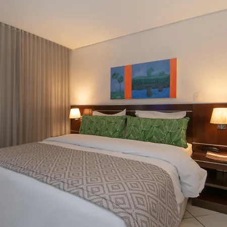 The rooms at the Porto Velho accommodation are fitted with climate control as well as a mini-fridge-bar. The Porto Velho hotel offers views of the city from these rooms.