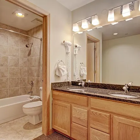 This Breckenridge villa also comes with a private bathroom equipped with a bathtub and a shower.
