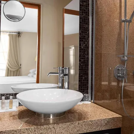 The rooms overlook the street and feature a flat-screen TV with satellite channels along with a mini fridge bar and coffee/tea making machines. These rooms are furnished with bespoke furniture including a writing table. Offering amenities such as dressing gowns and shower caps, the bathrooms also have a spa bathtub.
