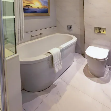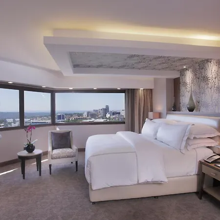 The luxury Sandton Sun And Towers Johannesburg features 553 rooms equipped with a flat-screen TV with satellite channels as well as a mini-fridge-bar and tea/coffee making equipment. Furnished with a couch, these rooms have a dressing room and a seating area. Offering such amenities as a shower cap and bath sheets, the bathrooms also include a tub, a separate toilet, and a shower. Guests can enjoy views of the city.