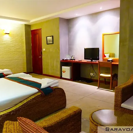 Saravoan Royal Palace Phnom Penh hotel is located only 10 minutes' stroll from Silver Pagoda, offering 30 rooms along with spa therapy, a courtyard, and a shared lounge. The 3-star hotel lies in the Daun Penh district of Phnom Penh, relatively near such cultural sights as National Museum.