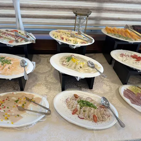 The rooms comprise a sitting area complete with an iron with ironing board and climate control, as well as a flat-screen TV with satellite channels. Nice touches include a bidet, a separate toilet, and a shower, along with bath sheets and towels. The rooms also overlook the town.