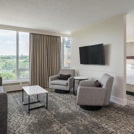 You can choose from one of the 227 air-conditioned rooms with a flat-screen TV, and self-catering amenities like a coffee machine. They are furnished with queen size beds along with a couch set and a cabinet. The rooms of the Saskatoon property look out over the South Saskatchewan River.