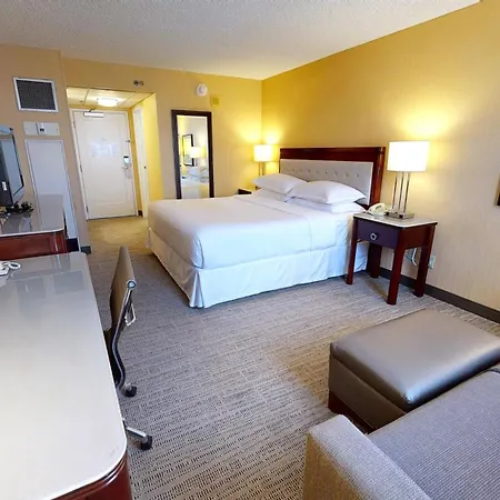 The suburban Sheraton West Des Moines features 285 rooms with a flat-screen TV with satellite channels, as well as coffee and tea making equipment. The nice touches include a carpeted floor, along with a couch.