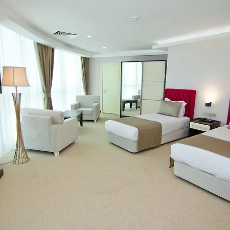 This modern hotel offers 132 rooms with a mini bar fridge and coffee/tea making facilities, and such modern conveniences as a flat-screen TV with satellite channels. These air-conditioned rooms offer luxurious furniture including a couch set. Bathrooms include a separate toilet and a shower, along with comforts such as hairdryers and bath sheets. Some rooms have views of Black Sea Coast.