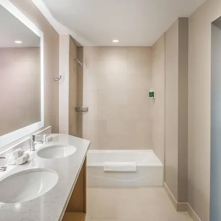 The rooms at the Fort Worth hotel have blackout drapes, an iron with ironing board, and climate control. Some of them comprise a balcony and a sitting area, appointed with a couch set and a writing desk. These rooms also feature couch beds, along with premium bedding. A roll-in shower and a separate toilet, along with such comforts as hair dryers and bath sheets, are also provided.