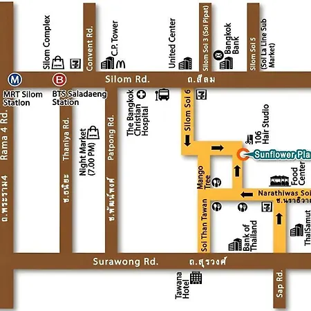 Offering storage for belongings, Sunflower Place Bangkok hotel lies in the Silom district of Bangkok, 1.3 miles from Snake Farm and about a 20-minute stroll from Lumphini Park. This 3-star hotel provides Wi-Fi, which is available throughout the property.