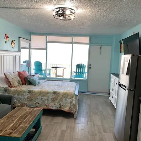 The 1-room Sunrise On The Beach Daytona Beach apartment is located approximately 10 minutes' drive from Sun Splash Park and 1.9 miles from Daytona Beach Golf Club. Staying in the beachfront apartment, nestled within easy reach of Congo River Golf, guests can relax on a terrace.
