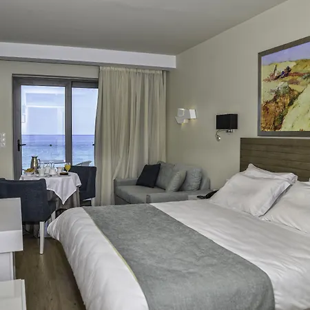 This accommodation offers rooms with a balcony and a sitting area featuring an air conditioner, along with a flat-screen TV with satellite channels. They feature bathrooms with a walk-in shower, a sauna, and a hot tub as well as hairdryers and slippers. The hotel offers views of the Cretan Sea from the rooms.