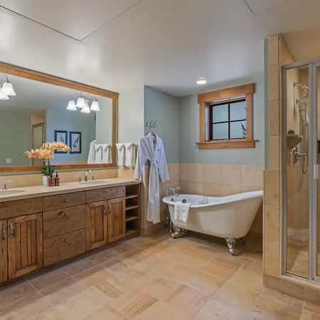 Offering mountain views, this Teton Village villa features a terrace. The Teton Village property comes with a bathroom with a roll-in shower, a separate toilet, and a shower/bath combination. Bathrooms are also equipped with a hair dryer, dressing gowns, and towels for your comfort.