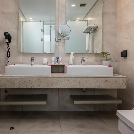 Certain rooms have an adjoining terrace and a balcony for your convenience. The rooms have a mini fridge bar and a coffee maker for self-catering along with a flat-screen TV with satellite channels and cable channels for entertainment. Providing a separate toilet, the bathrooms are also equipped with a hair dryer and bath sheets.