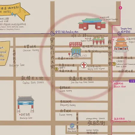 The smoke-free Time Traveller Hotel- Near Beijing Yonghe Lama Temple, Ghost Street, Beihai Park, Jingshan Park, Drum Tower, Houhai Bar Street, Tian'Anmen Square, Located In Beijing Traditional Hutongs, 5 Minutes Away From Subway, Free Laundry Serive is located approximately a 15-minute drive from Temple of Heaven, within walking distance of Yonghe Temple. Hall of Dharma Wheel in Beijing is within easy walking distance of the 3-star hotel.